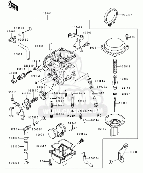 All models of the KLX650 employ a Keihin CVK40 carburetor, with only the main jet size being the critical difference between the various models (there are also very minor differences between the size of the pilot jet, the unremovable starter jet and the type of jet needle used). These are a Constant Velocity type carburetor designed to primarily facilitate a smooth delivery of power from the engine. They are not a performance type carburetor but do still provide adequate engine power and responsiveness.